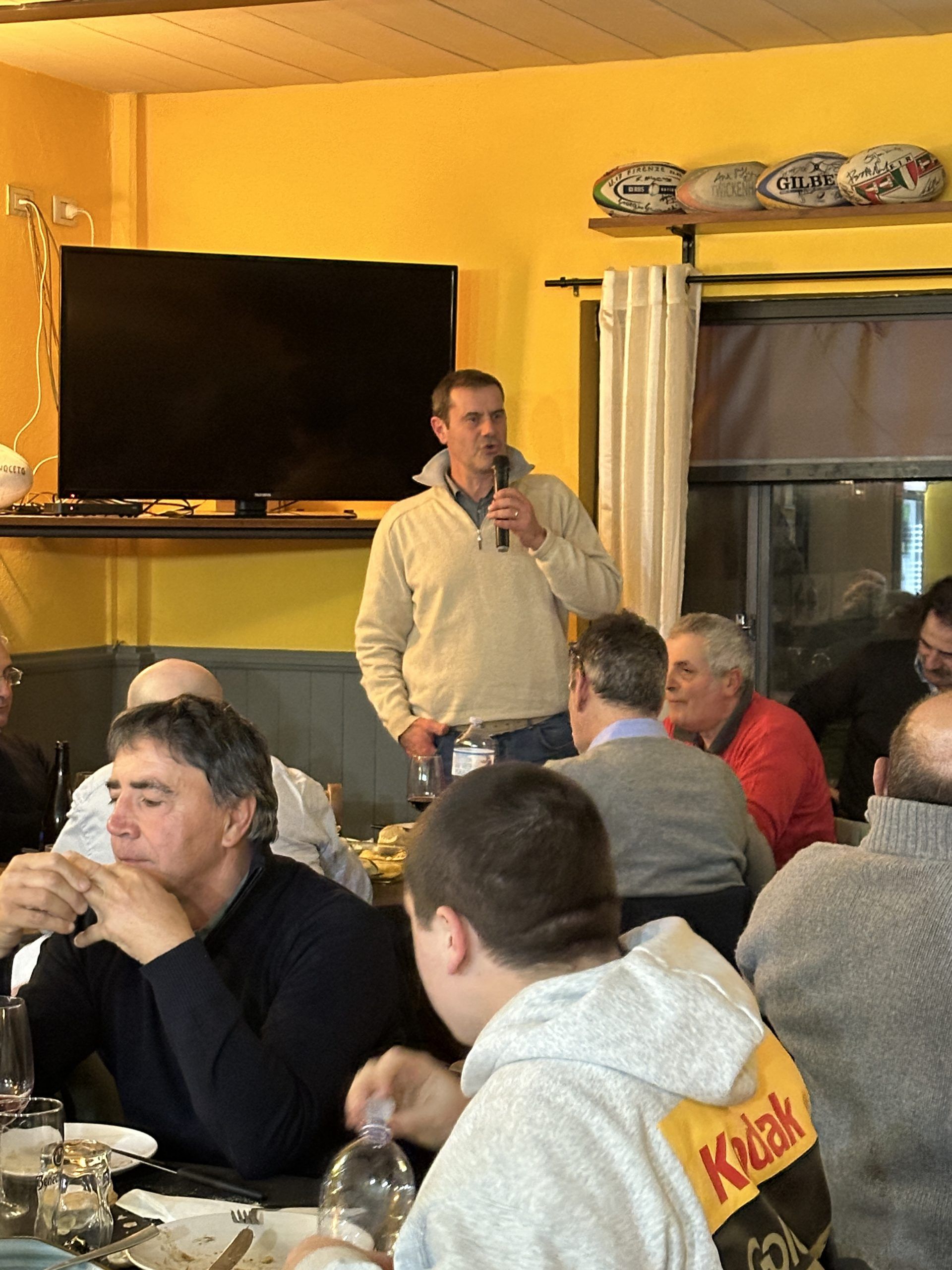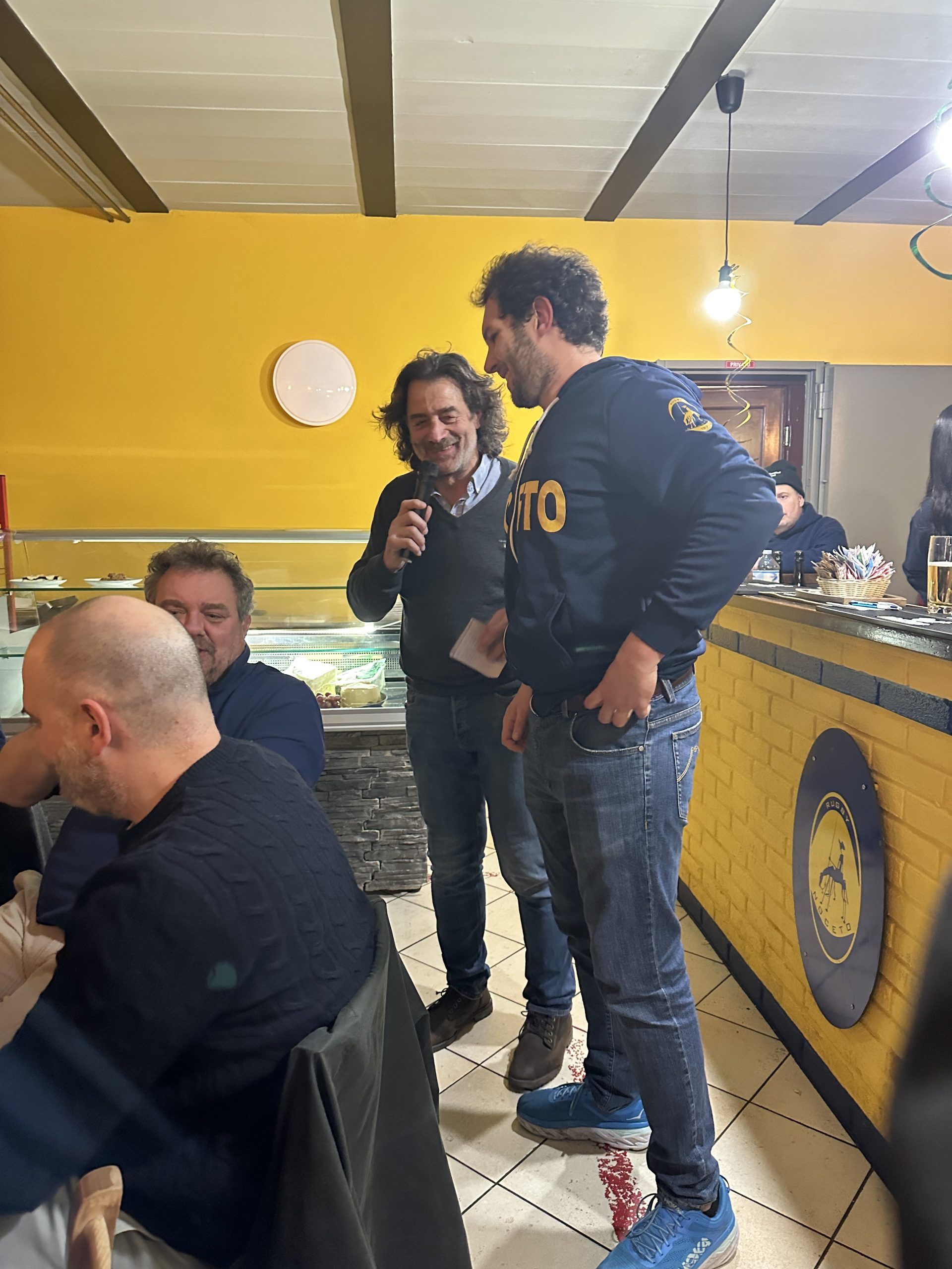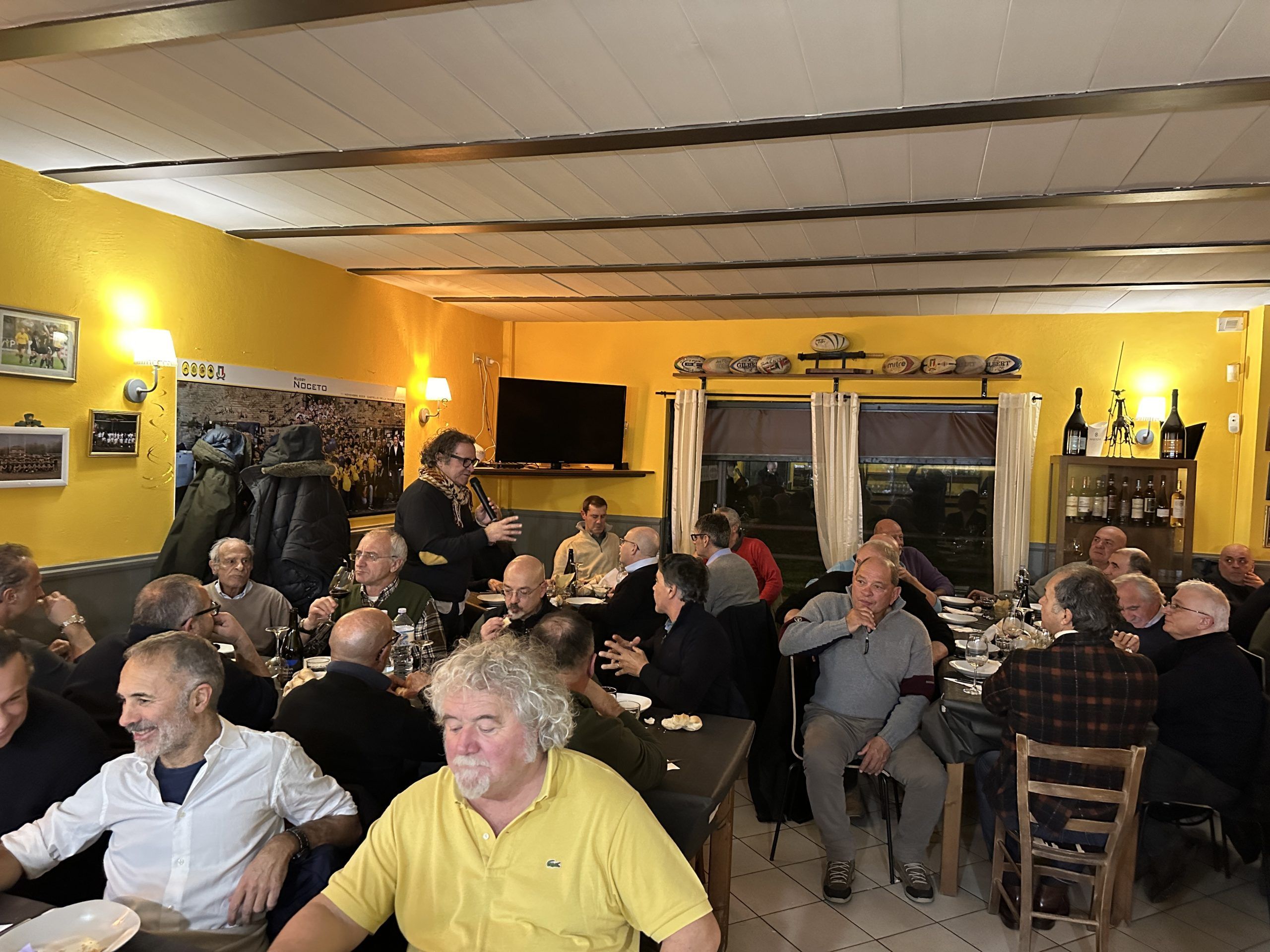 Nata quasi per scherzo “La Cena dei Pellerossa” ha saputo radunare oltre sessanta degli uomini: atleti, allenatori, presidente ma anche fisioterapisti, medici e sostenitori che hanno fatto la storia del Rugby Noceto. A raggrupparli in Clubhouse davanti a tortelli e ganassini con polenta Massimo Giovanelli e Peter Lewis a cui va il merito di aver detto “perchè non facciamo una cena prima che Peter riparta per l’Australia – così è nata commenta Giovanelli – ed è questo lo spirito che pervade questa serata in famiglia.”