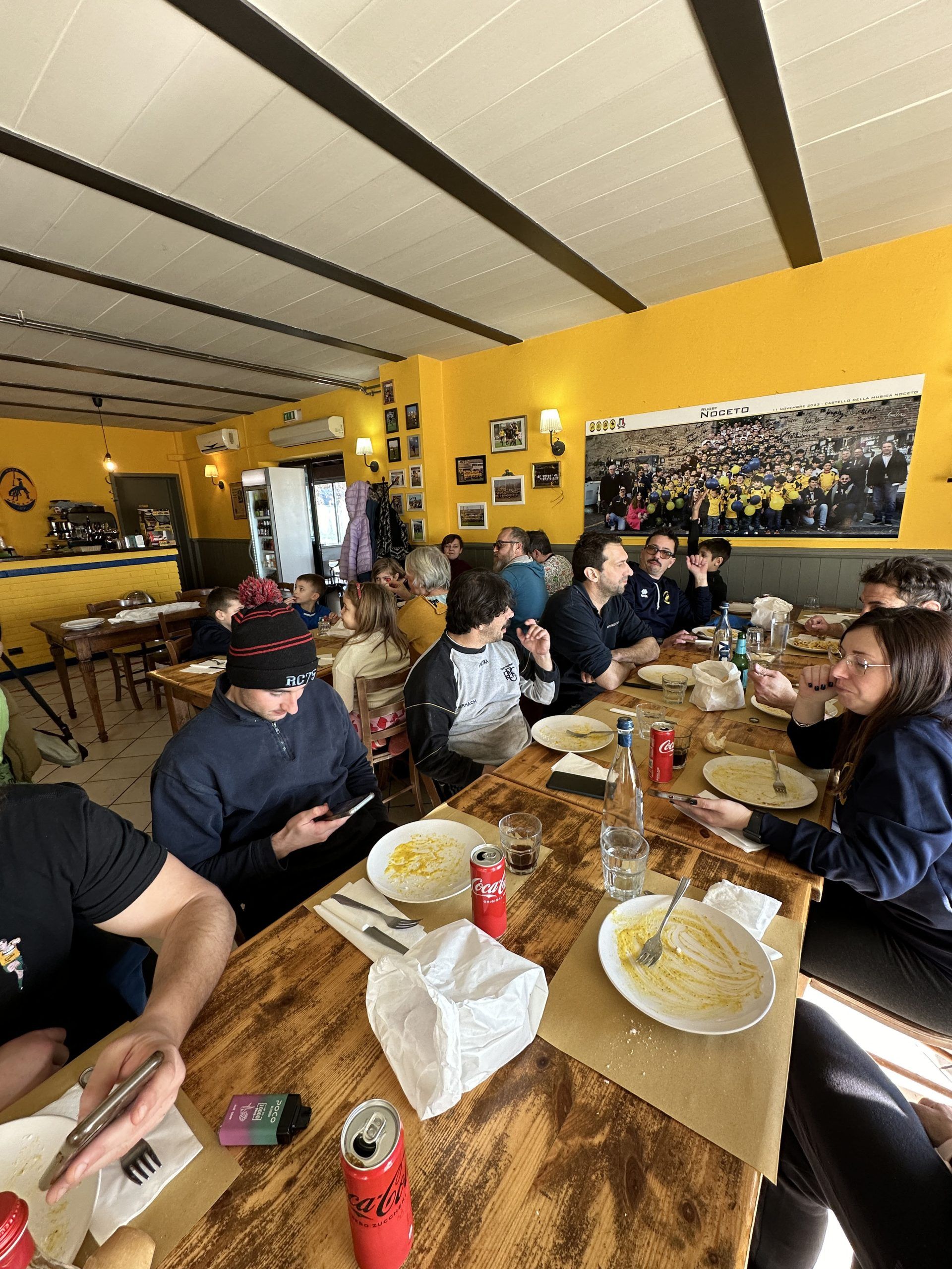 Al termine dei lavori terzo tempo con pastasciutta in cluhouse e poi tutti a tifare Italia.