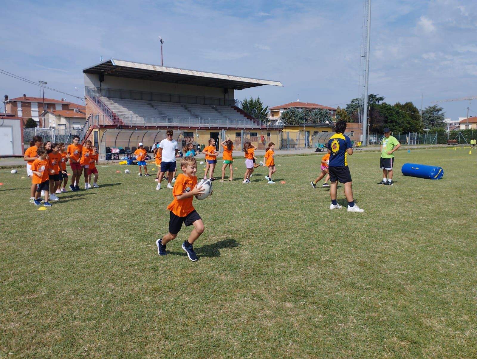 Oggi protagonista è stato il Rugby. I bambini iscritti hanno potuto cimentarsi con attività e giochi propedeutici alla palla ovale assieme ai ragazzi dell’Under 18 coadiuvati da Fabio Chiesa.